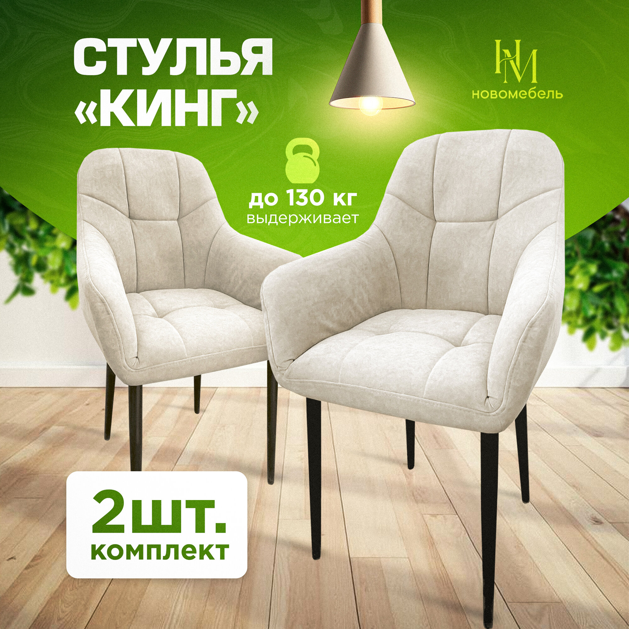 Характиристики этого товара не найдены!Отзывы на Стулья для кухни мягкие комплект 2 шт НОВОМЕБЕЛЬ Кинг велюр арбен бежевый