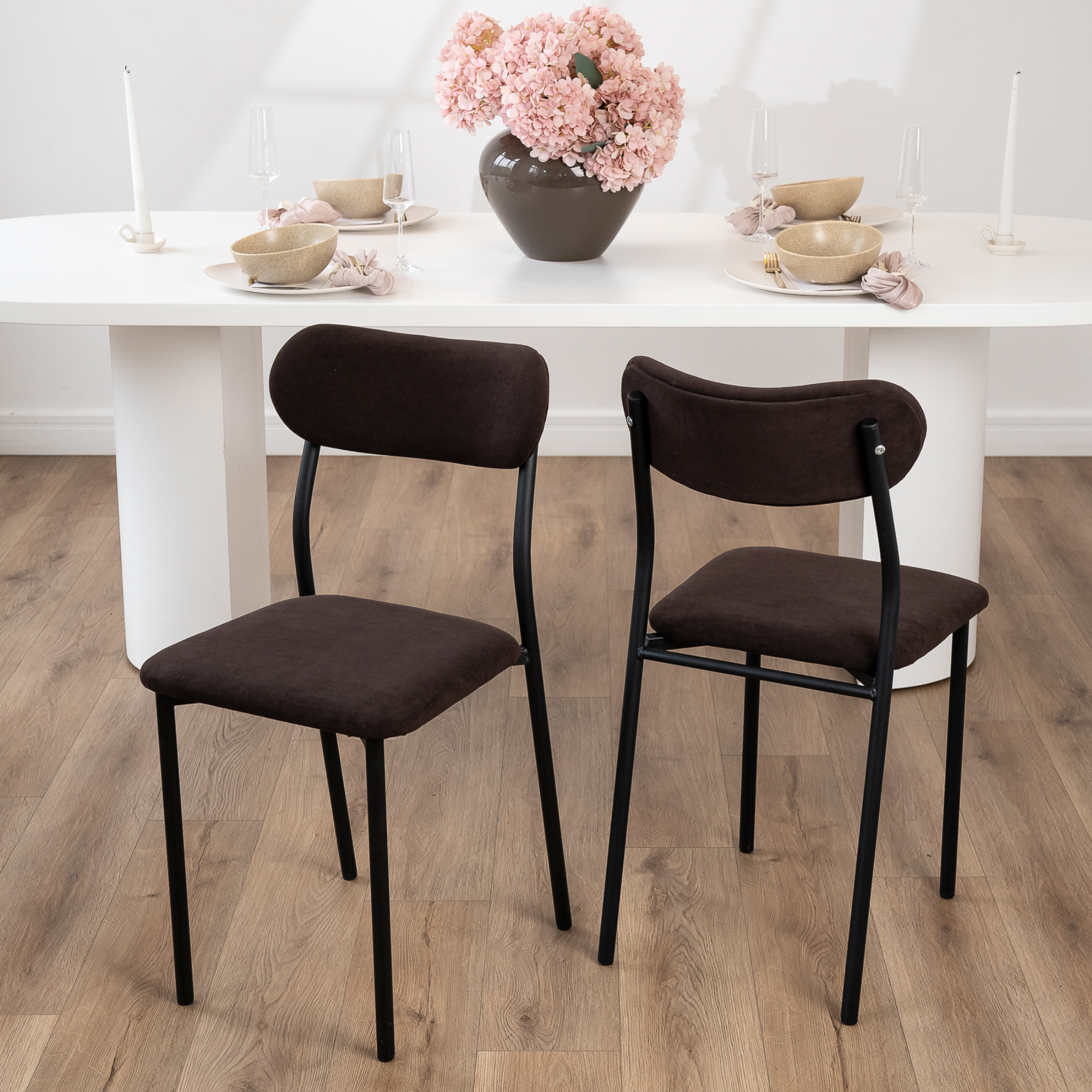 10 цен на Стулья для кухни SANYAK комплект 2 шт мягкие со спинкой для обеденной зоны, велюр, Коричневый