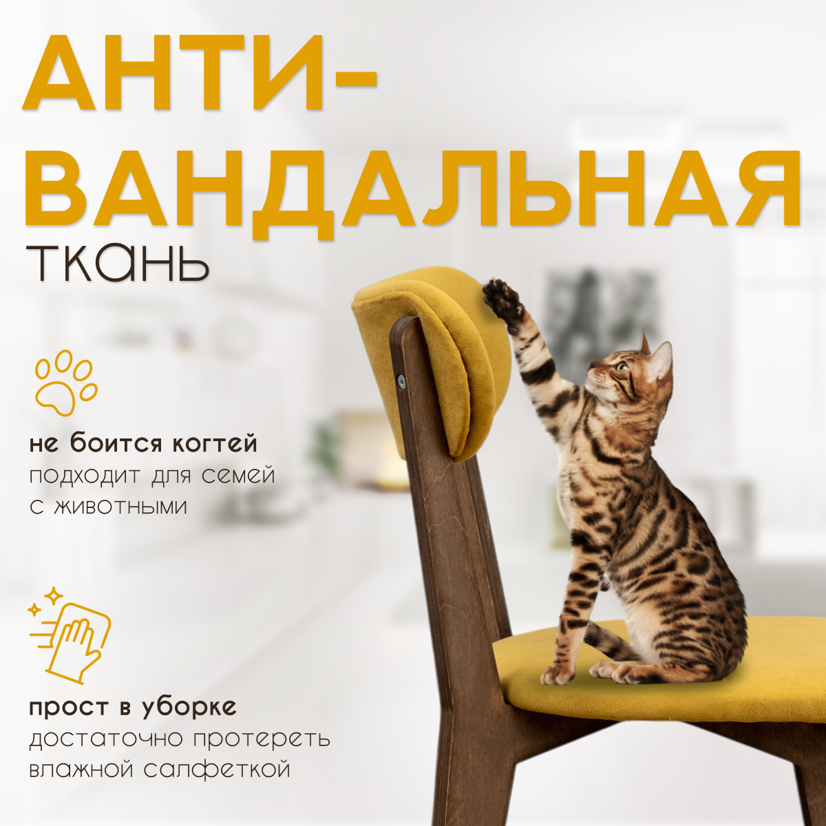Стулья для кухни SANYAK комплект 4 шт деревянные мягкие со спинкой для обеденной зоны, велюр, Горчичный информация: