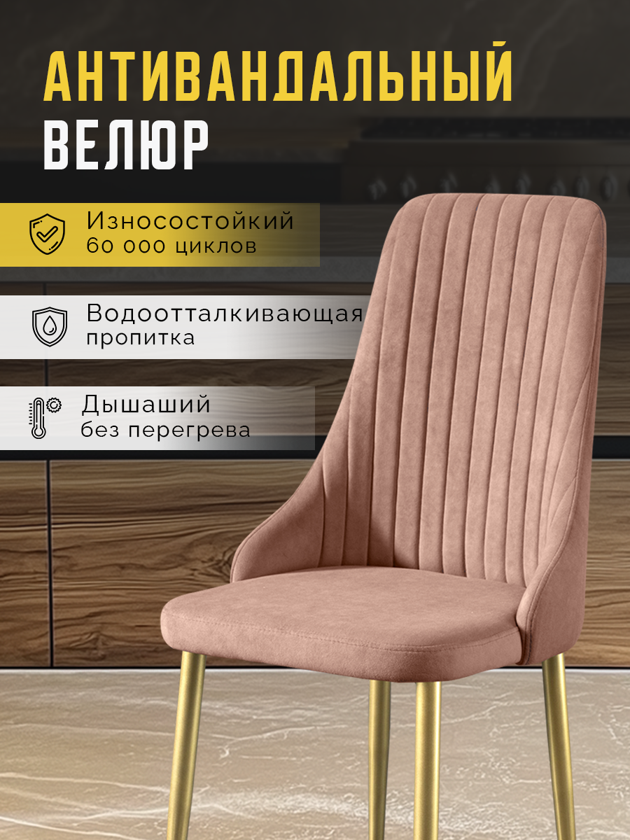 Характиристики этого товара не найдены!Отзывы на Стулья для кухни 2 шт Кора мягкие, с высокой спинкой, розовые, велюр / Комплект кухонных стульев