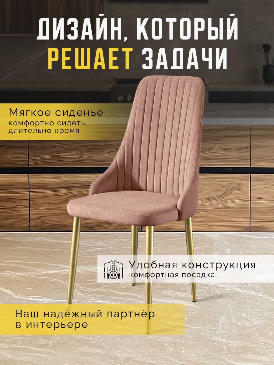 10 цен на Стулья для кухни 2 шт Кора мягкие, с высокой спинкой, розовые, велюр / Комплект кухонных стульев