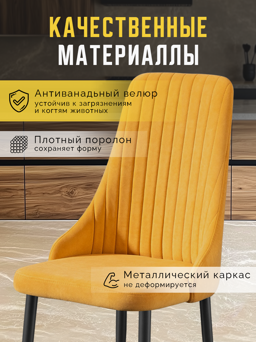 Отзывы на Стулья для кухни 2 шт Кора мягкие, с высокой спинкой, желтые, велюр / Комплект кухонных стульев