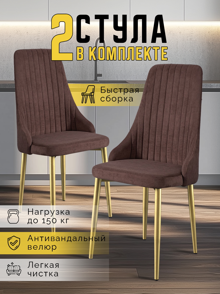Характиристики этого товара не найдены!Отзывы на Стулья для кухни 2 шт Кора мягкие, с высокой спинкой, коричнивые, велюр / Комплект кухонных стульев