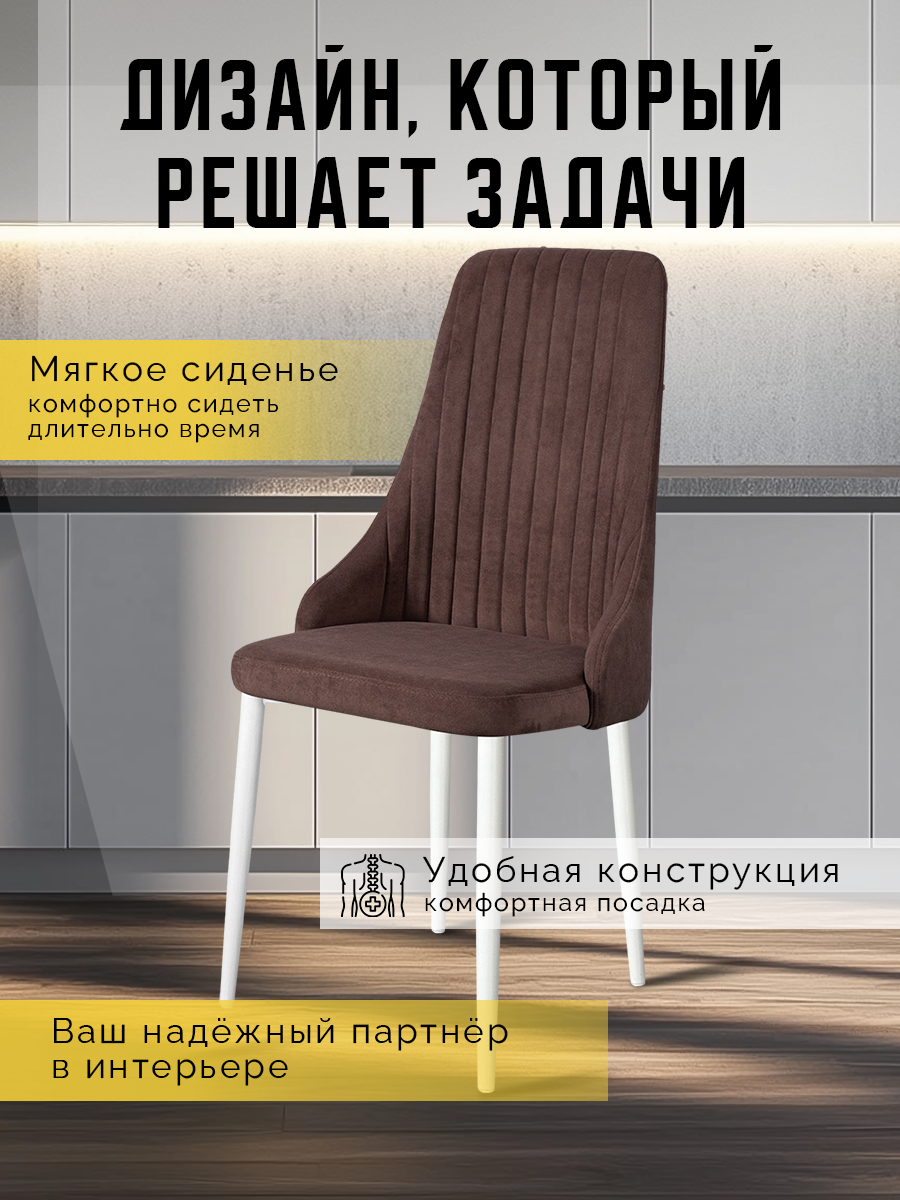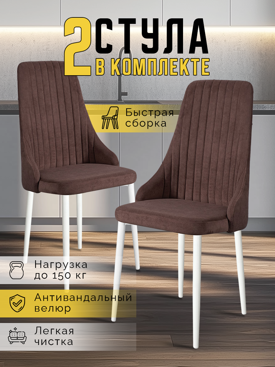10 цен на Стулья для кухни 2 шт Кора мягкие, с высокой спинкой, коричневые, велюр / Комплект кухонных стульев