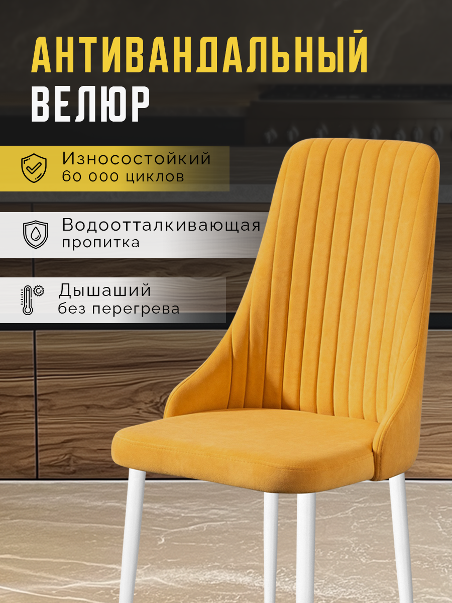 Отзывы на Стулья для кухни 2 шт Кора мягкие, с высокой спинкой, желтый велюр / Комплект кухонных стульев