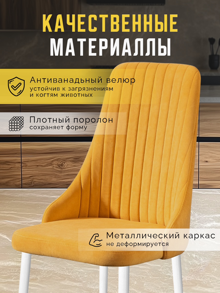 Стулья для кухни 2 шт Кора мягкие, с высокой спинкой, желтый велюр / Комплект кухонных стульев информация: