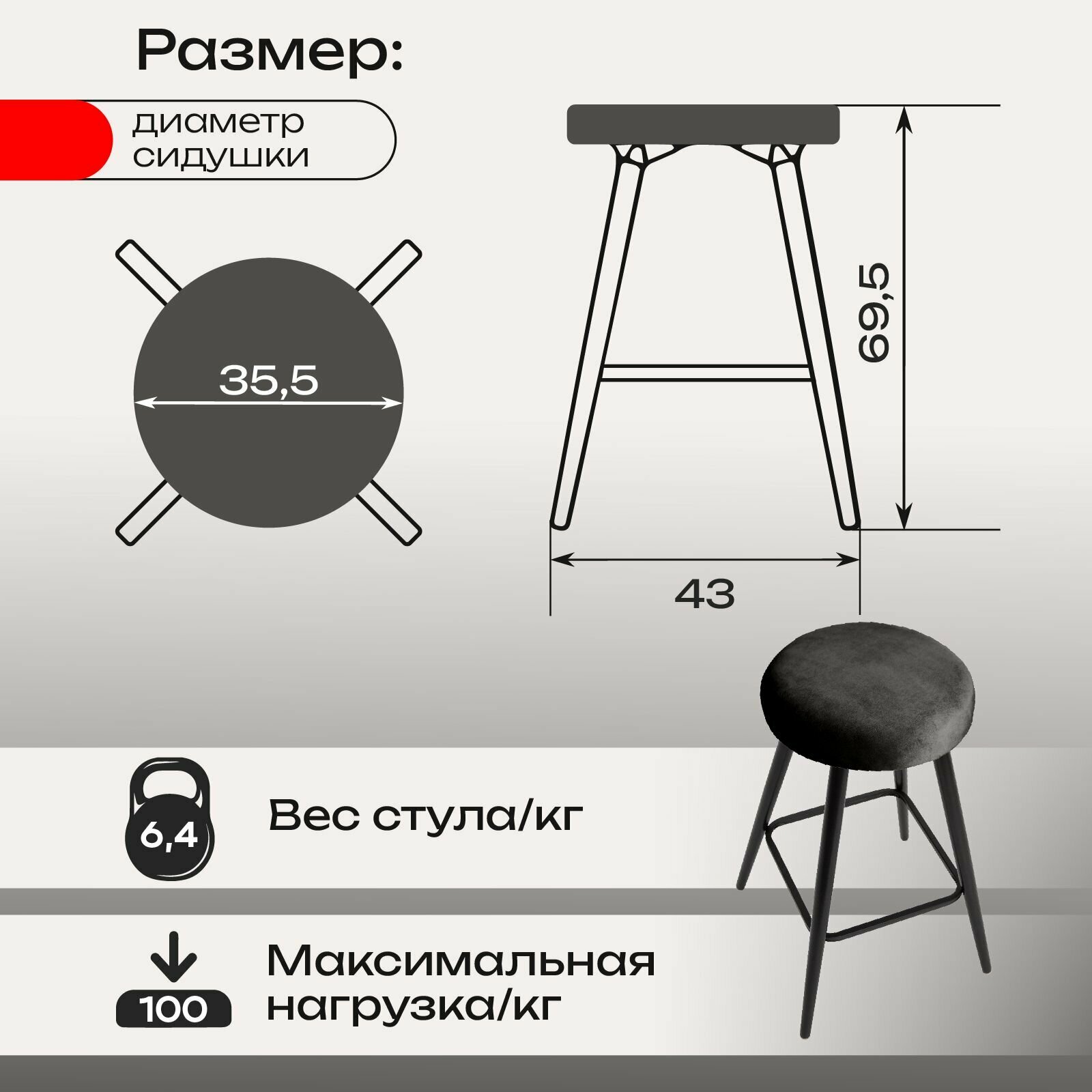 Барный стул кухонный лофт комплект 2 штуки, мягкий обеденный для кухни гостиной и дома, вельвет темно-серый, АМИ мебель информация: