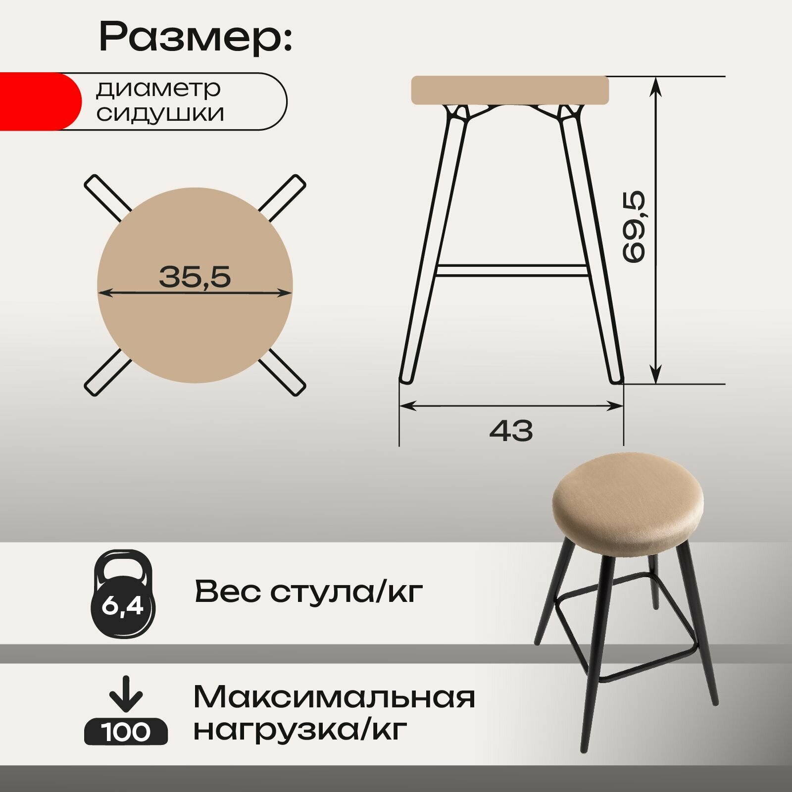 Характиристики этого товара не найдены!Отзывы на Барный стул кухонный лофт комплект 2 штуки, мягкий обеденный для кухни гостиной и дома, вельвет бежевый, АМИ мебель
