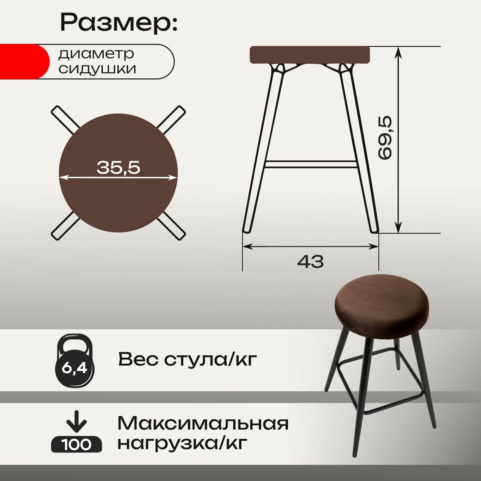 Характиристики этого товара не найдены!Отзывы на Барный стул кухонный лофт комплект 2 штуки, мягкий обеденный для кухни гостиной и дома, вельвет коричневый, АМИ мебель