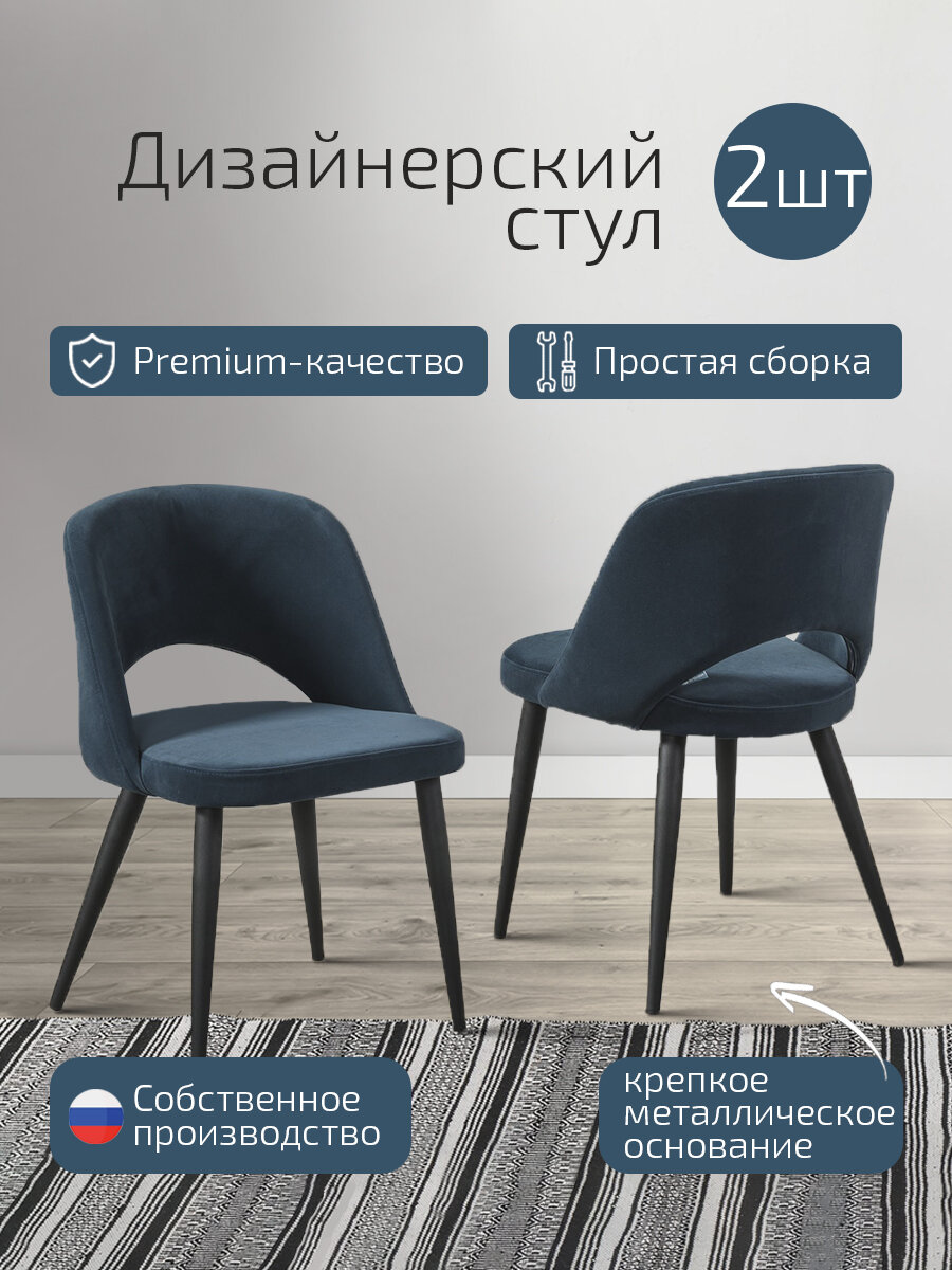 10 цен на Стулья для кухни комплект 2 шт, кухонные стулья Lars Темно-синий