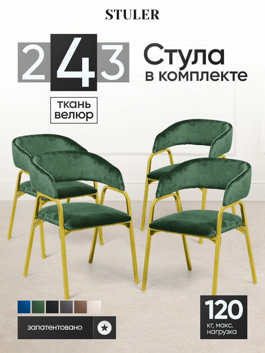Комплект стульев STULER Amater, для кухни, велюр, с подлокотниками, 4 шт 19 990 ₽