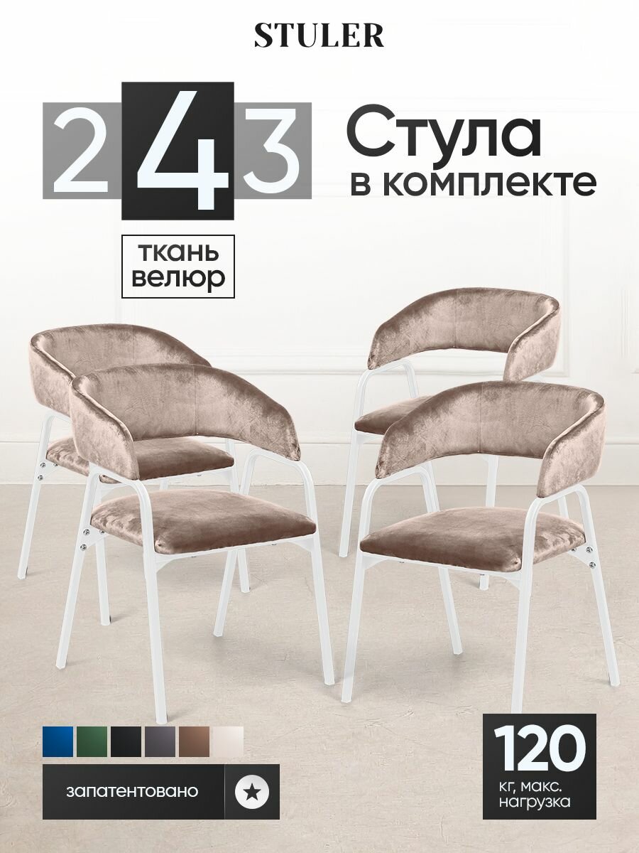 Комплект стульев STULER Amater, для кухни, велюр, с подлокотниками, 4 шт информация: