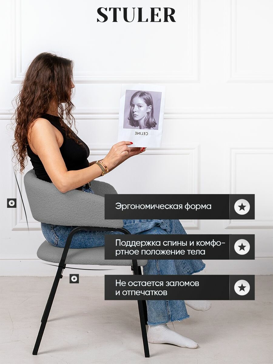 10 цен на Стул Букле Серый, Барашек, мягкий, 2 шт, черные матовые ножки.