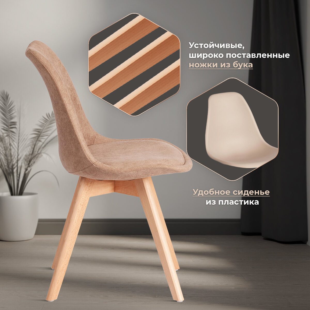 Стул для кухни со спинкой мягкое сиденье TetChair TULIP SOFT (mod. 053V), 1 шт, ткань, бежевый информация: