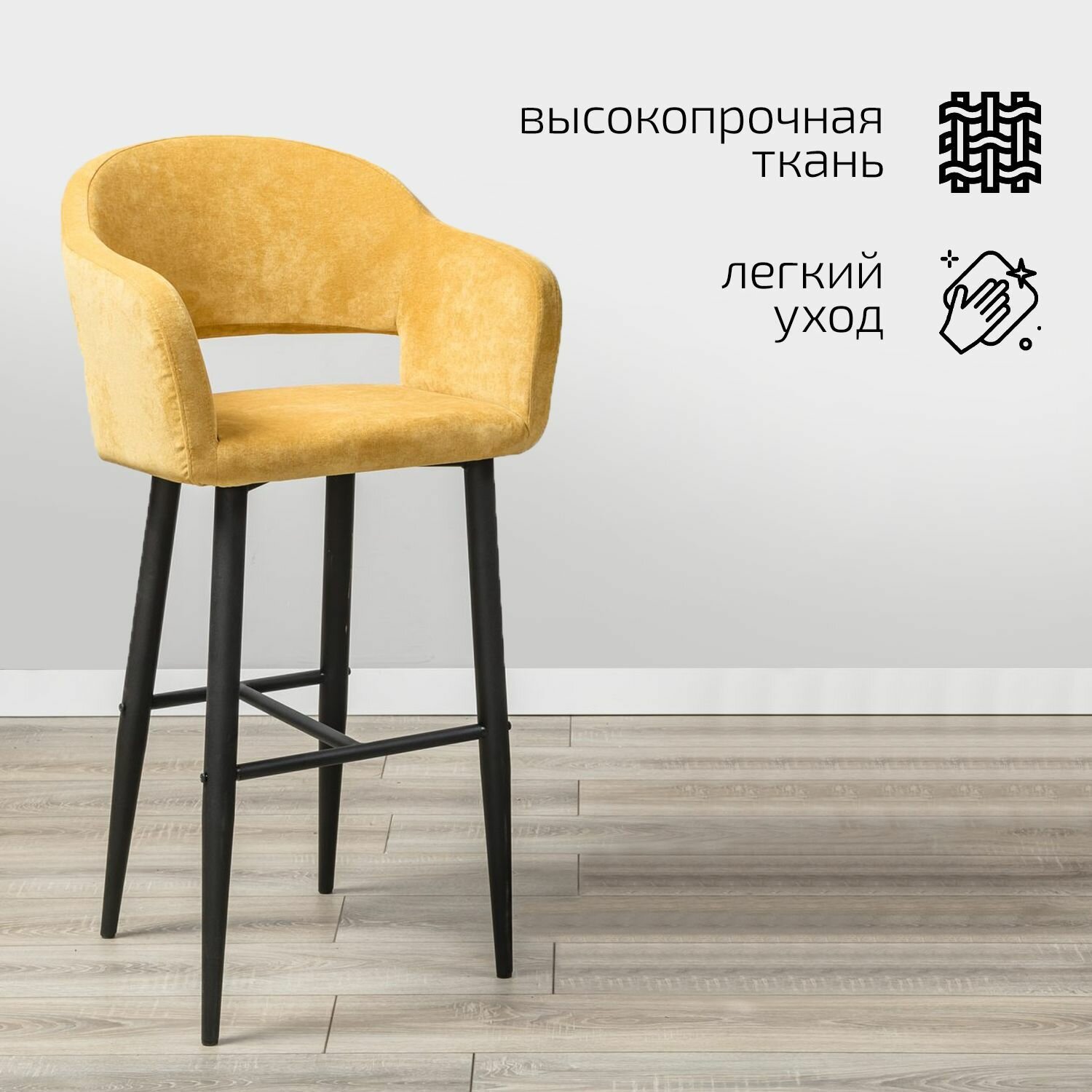 Барный стул со спинкой, стул барный для кухни Oscar желтый + черные ножки информация: