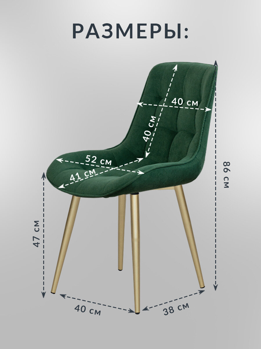 Стулья для кухни Румба мягкие со спинкой 4 шт, зеленый с золотистыми ножками информация: