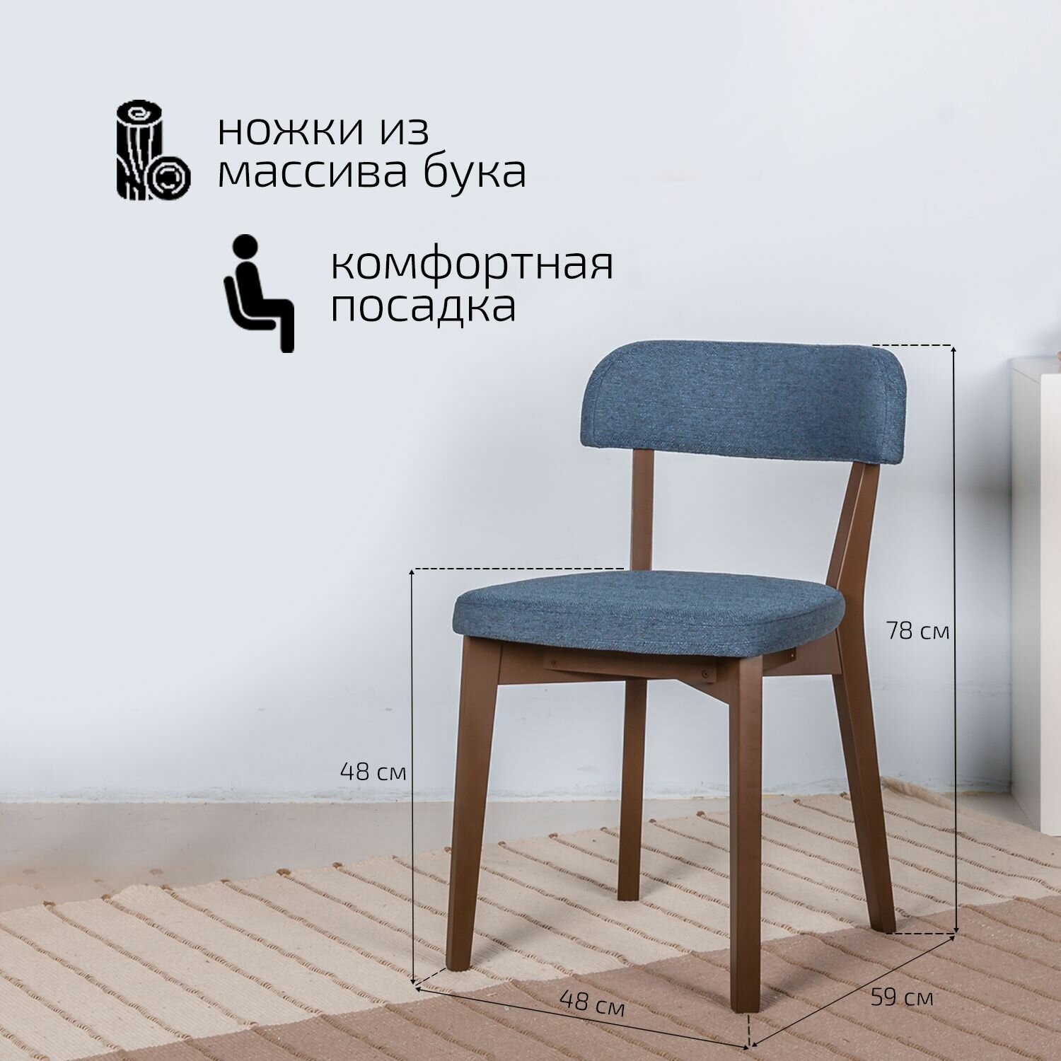 Комплект премиум стульев для кухни 2 шт, стул для кухни обеденный со спинкой Hugs Синий + Ножки темный орех 19 999 ₽
