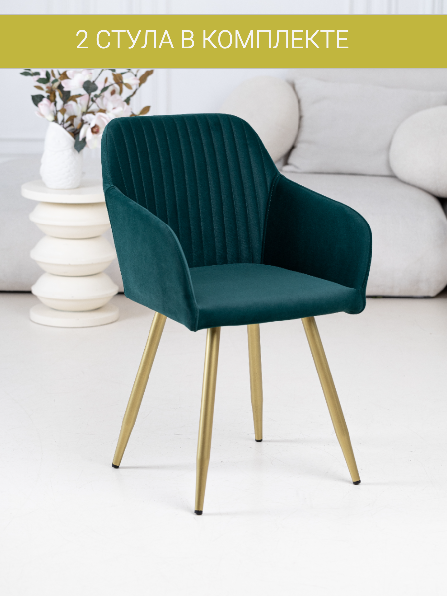 10 цен на Комплект стульев для кухни Гранд "Премиум" изумрудный с золотыми ножками 2 шт.