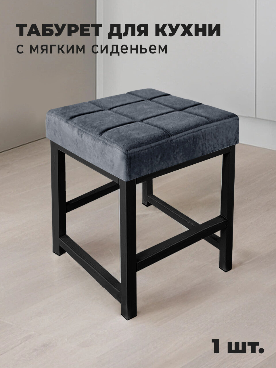 Табурет для кухни и дома металлический с мягким сиденьем, 1 шт. информация: