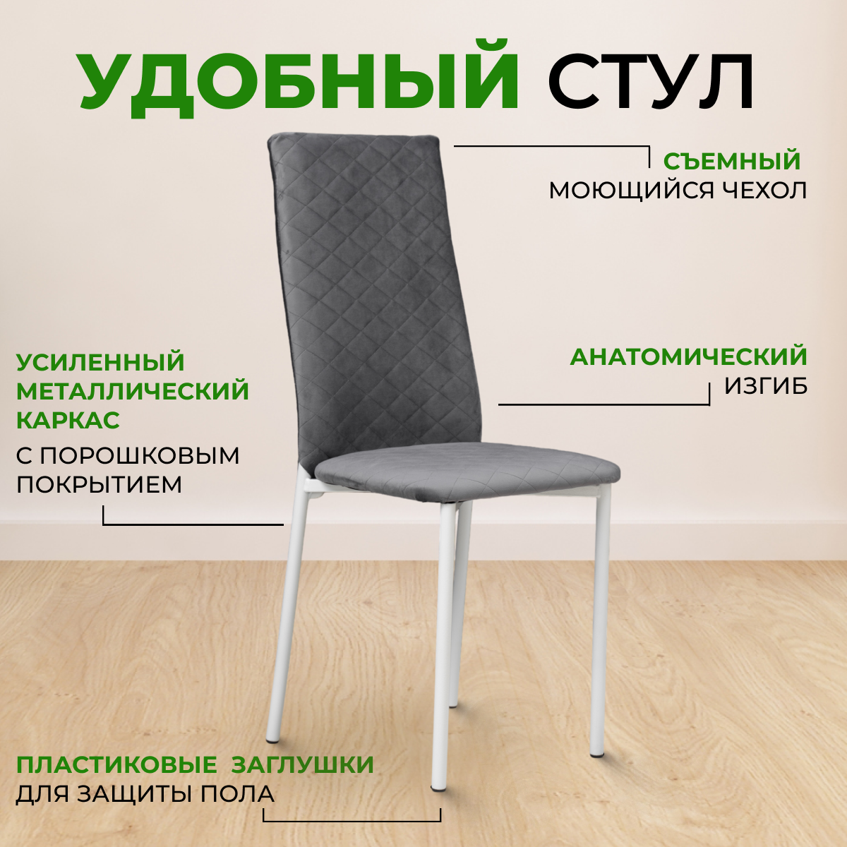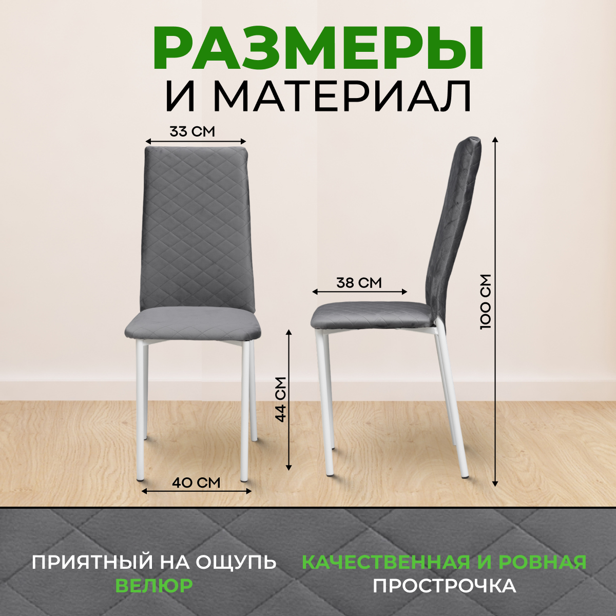 Стулья для кухни SANYAK комплект 4 шт мягкие со спинкой для обеденной зоны, велюр, Серый 11 600 ₽