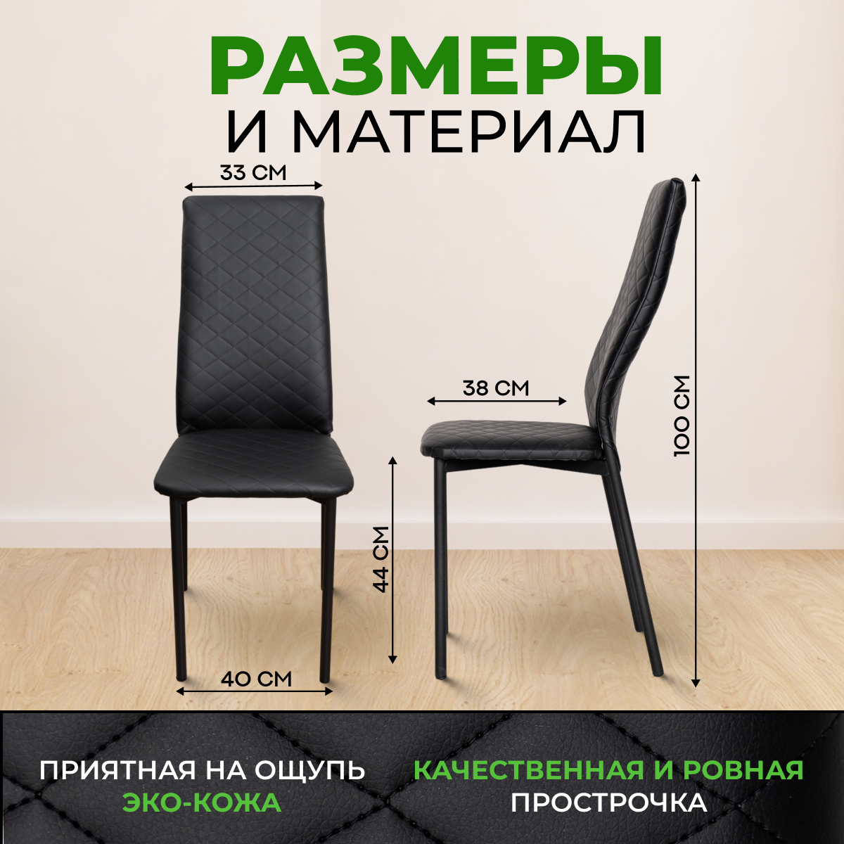 Стулья для кухни SANYAK комплект 4 шт мягкие со спинкой для обеденной зоны, экокожа, Черный 11 600 ₽