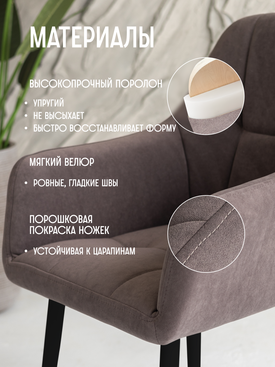 Стул для кухни мягкий коричневый со спинкой и подлокотниками интерьерный VVdom информация: