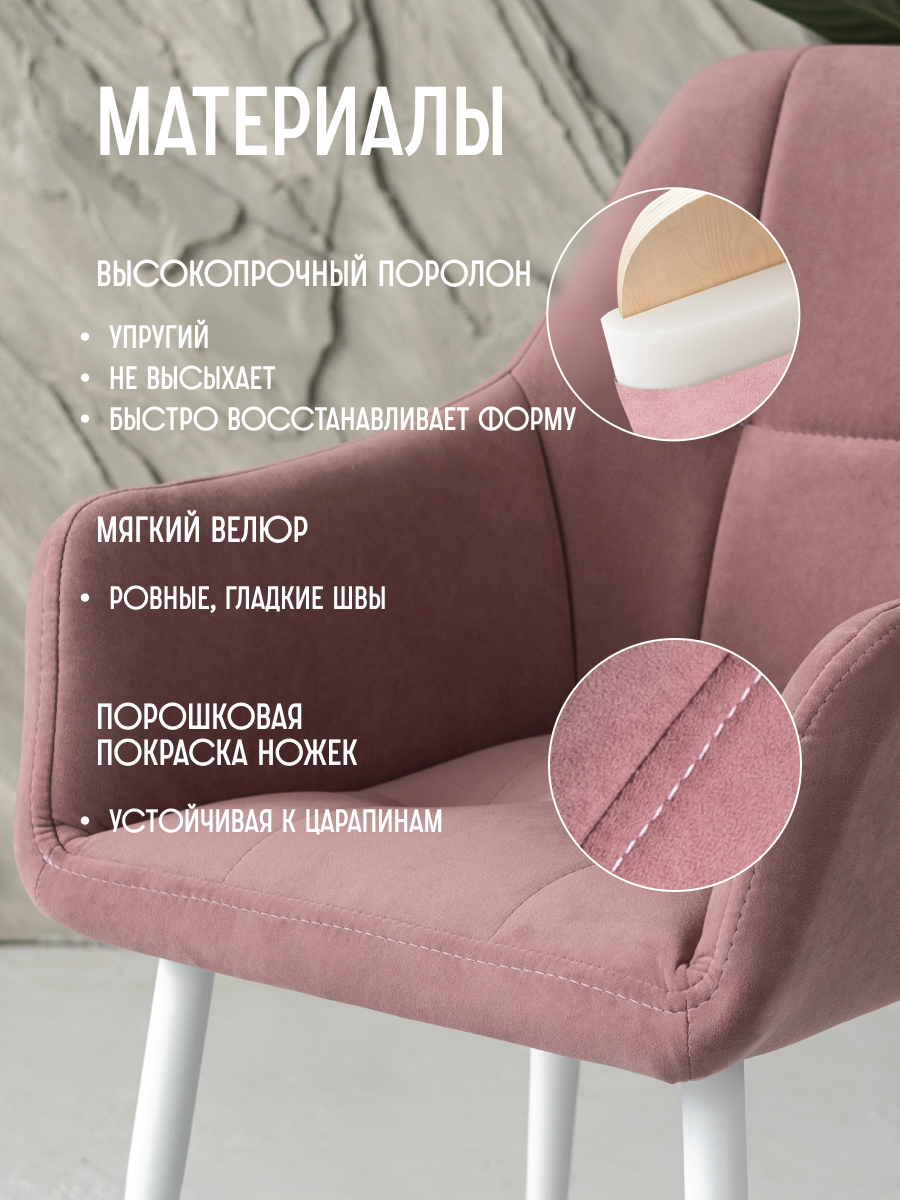 Характиристики этого товара не найдены!Отзывы на Стул для кухни мягкий розовый со спинкой и подлокотниками интерьерный VVdom
