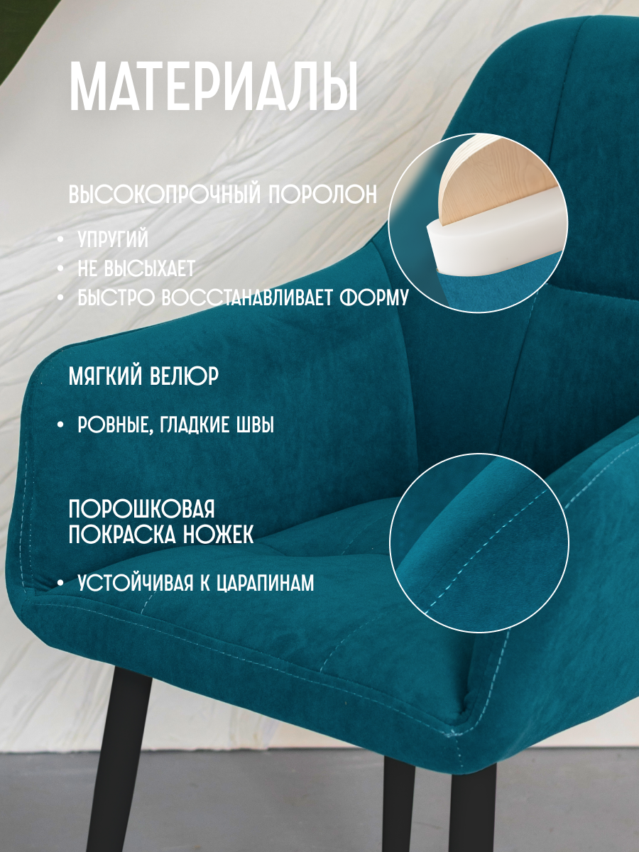 Отзывы на Стул для кухни мягкий бирюзовый со спинкой и подлокотниками интерьерный VVdom