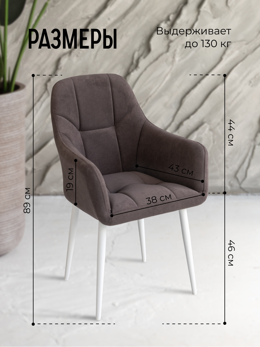 Отзывы на Стул для кухни мягкий на металлокаркасе коричневый со спинкой и подлокотниками интерьерный VVdom