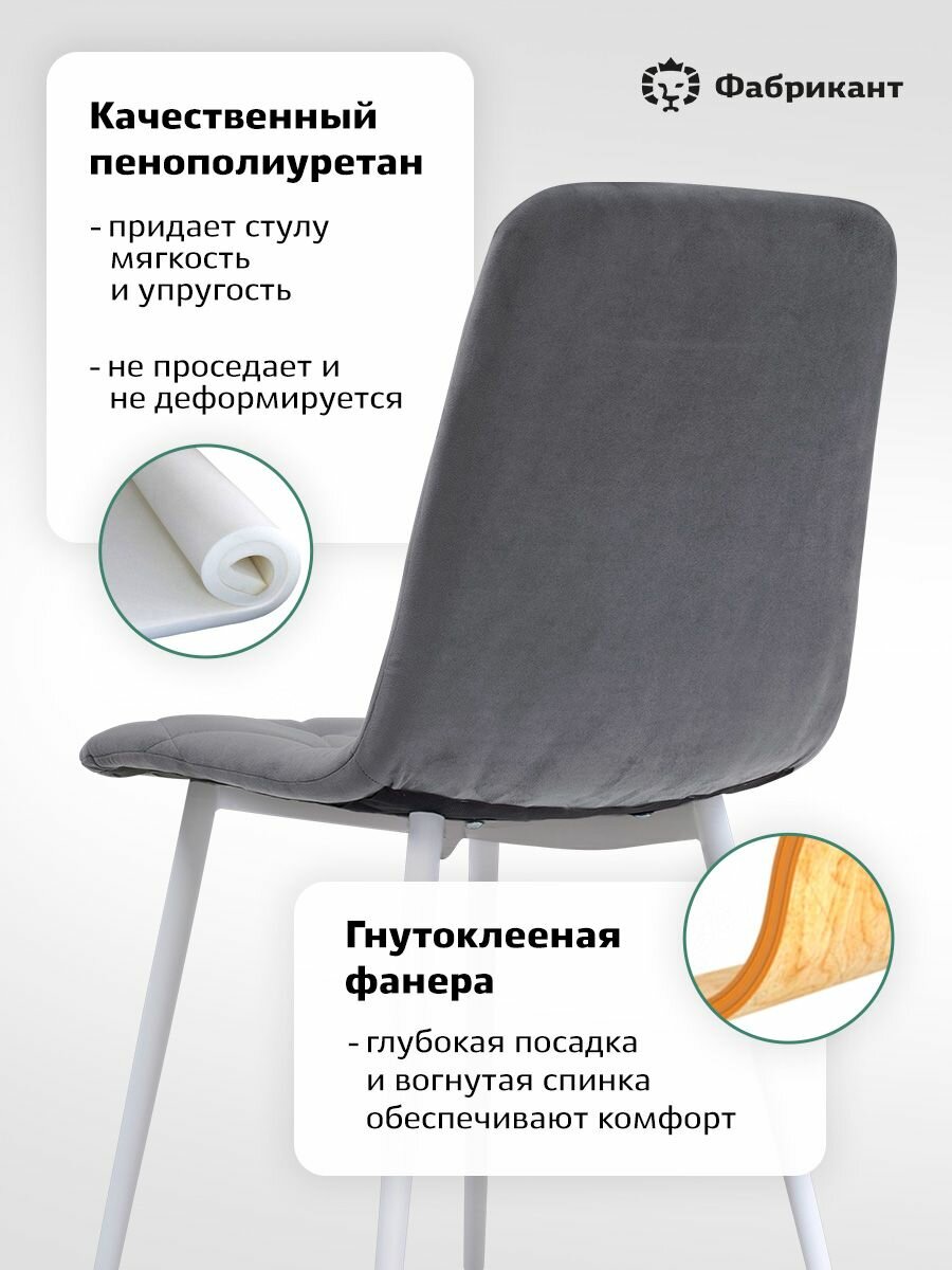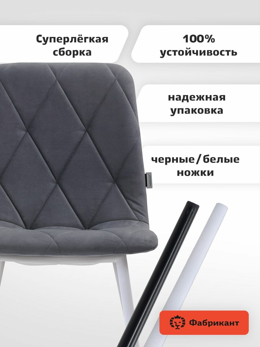 Стулья для кухни Фабрикат Ричи мягкие со спинкой, велюр тёмно-серый, белые ножки, 4 шт. информация: