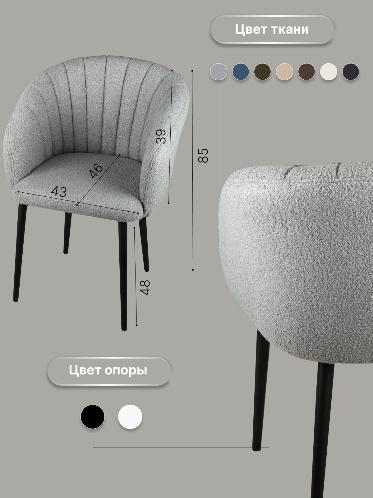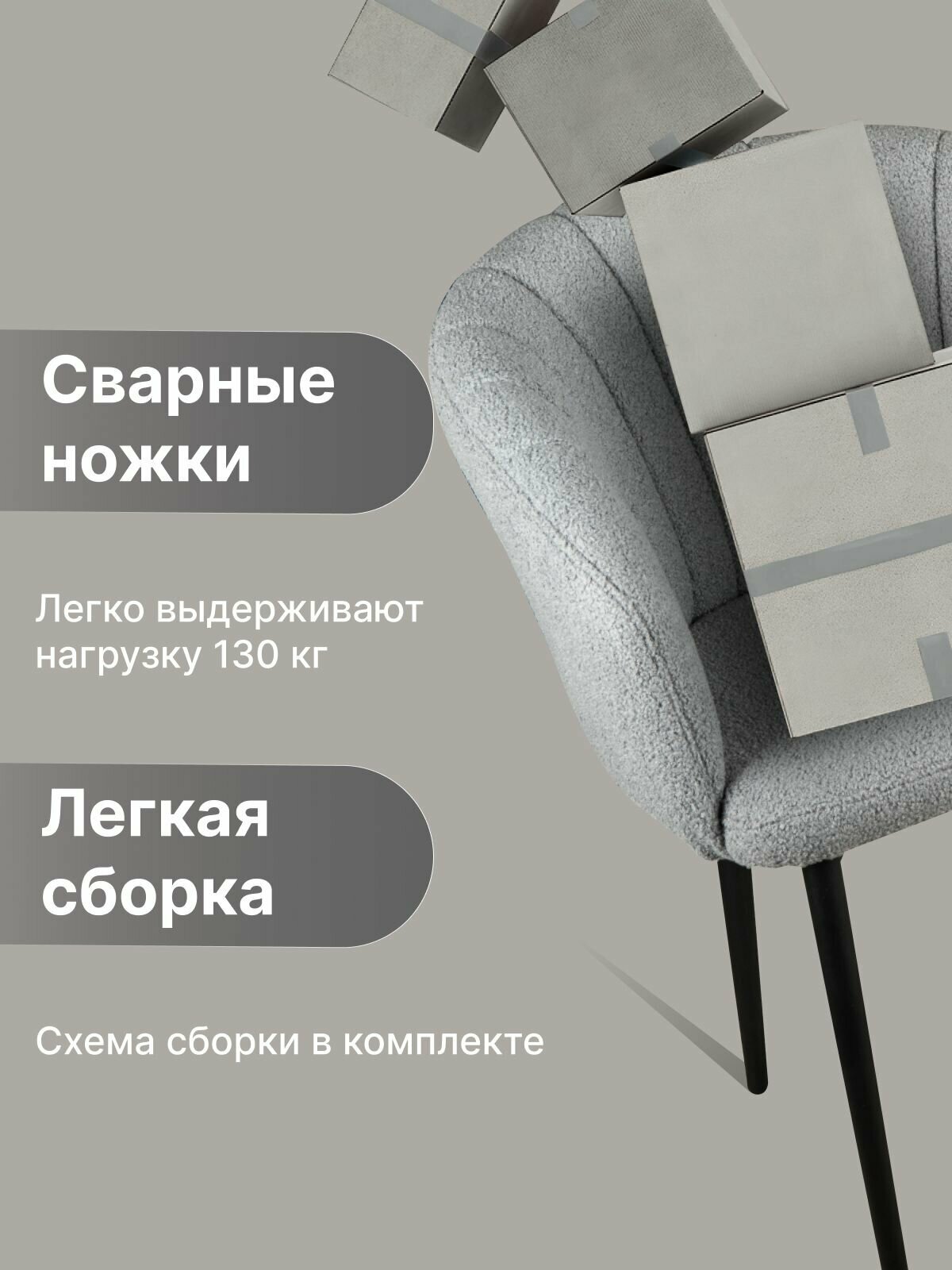 Стул "Венера" У Стулыча, 1 шт, Букле, серый, черные ножки информация: