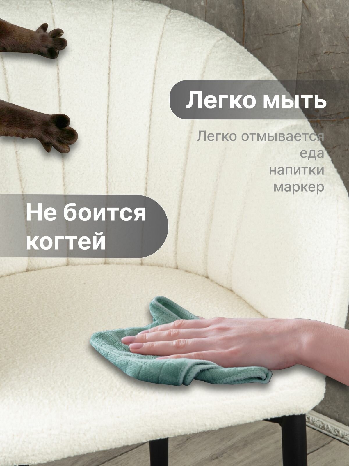 Стул "Венера" У Стулыча, 1 шт, Букле, серый, белые ножки 10 600 ₽