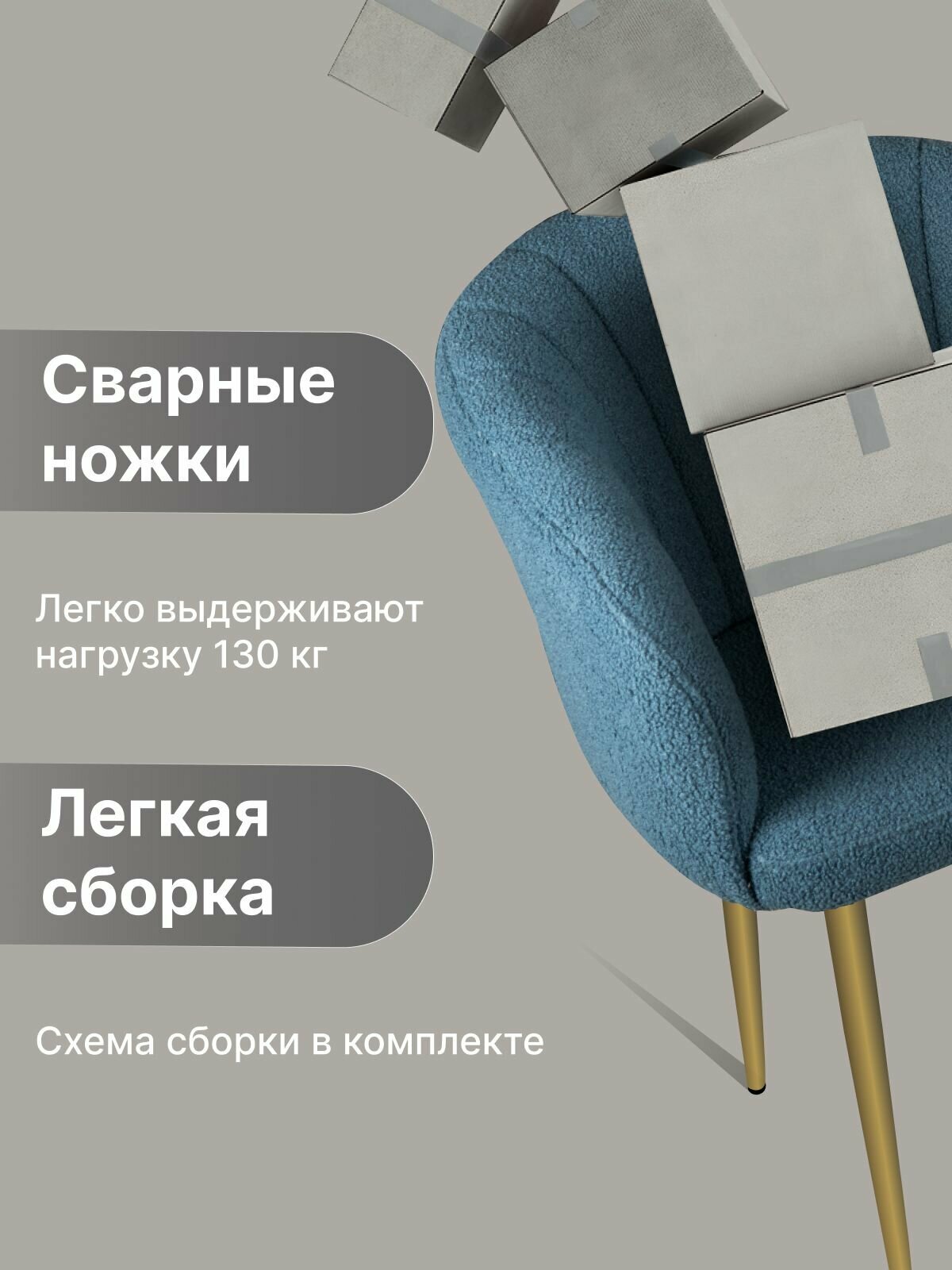 Стул "Венера" У Стулыча, 1 шт, Букле, синий, золотистые ножки информация: