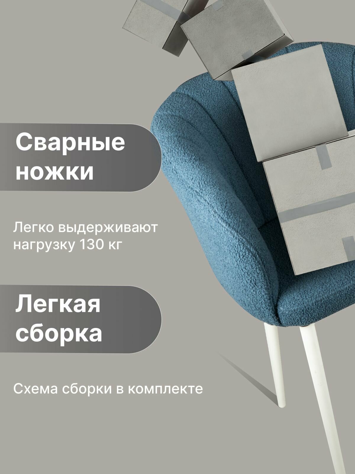 Стул "Венера" У Стулыча, 1 шт, Букле, синий, белые ножки информация:
