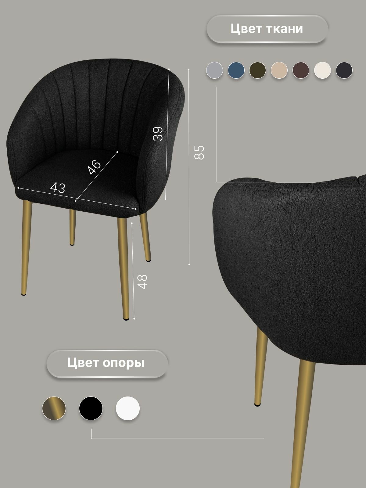 Стул "Венера" У Стулыча, 1 шт, Букле, черный, золотистые ножки информация: