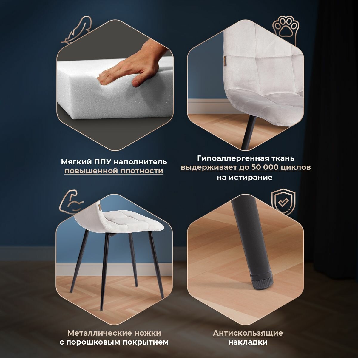 10 цен на Комплект стульев для кухни TetChair CHILLY (mod. JSC-220) 4 шт, велюр/металл, светло-серый/черный