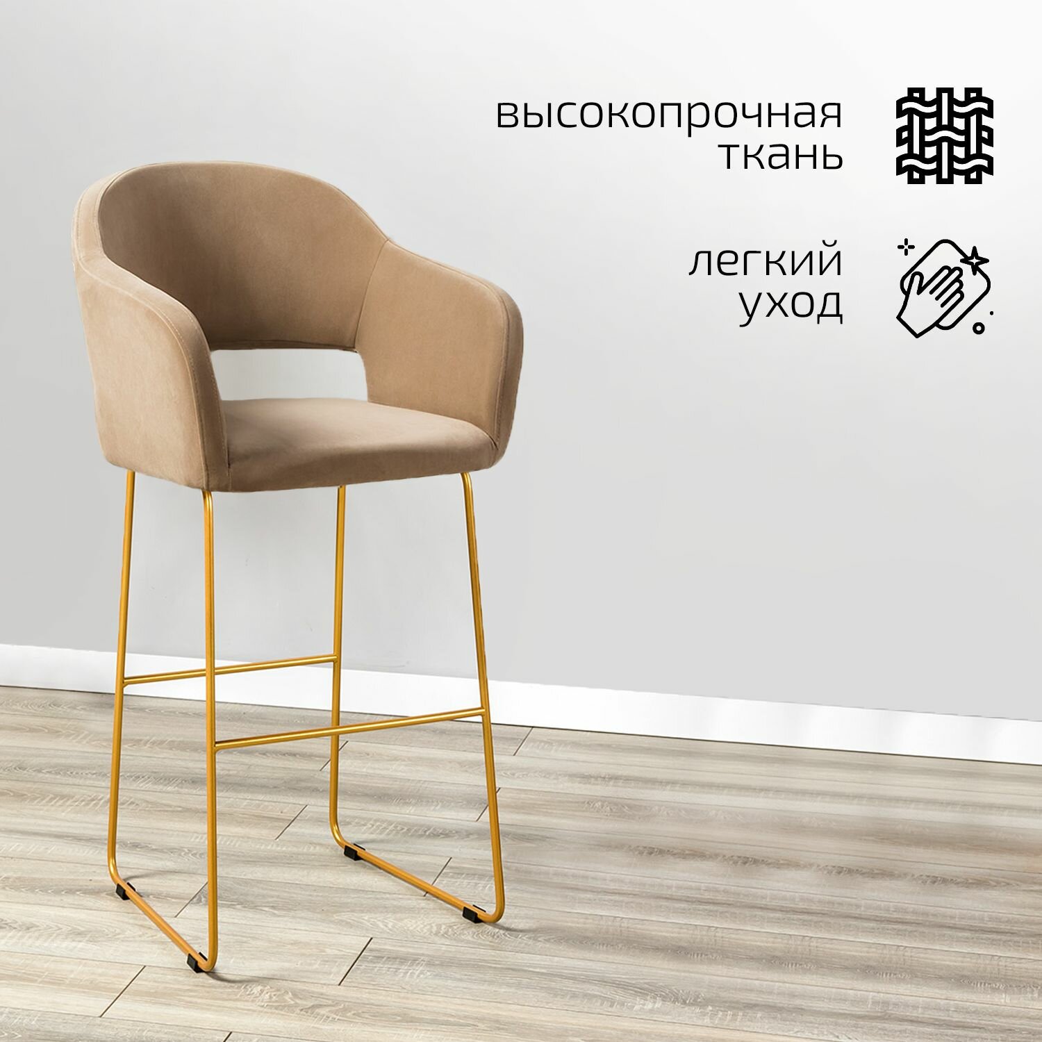 Барный стул со спинкой, стул барный для кухни Oscar бежевый линк + золото информация:
