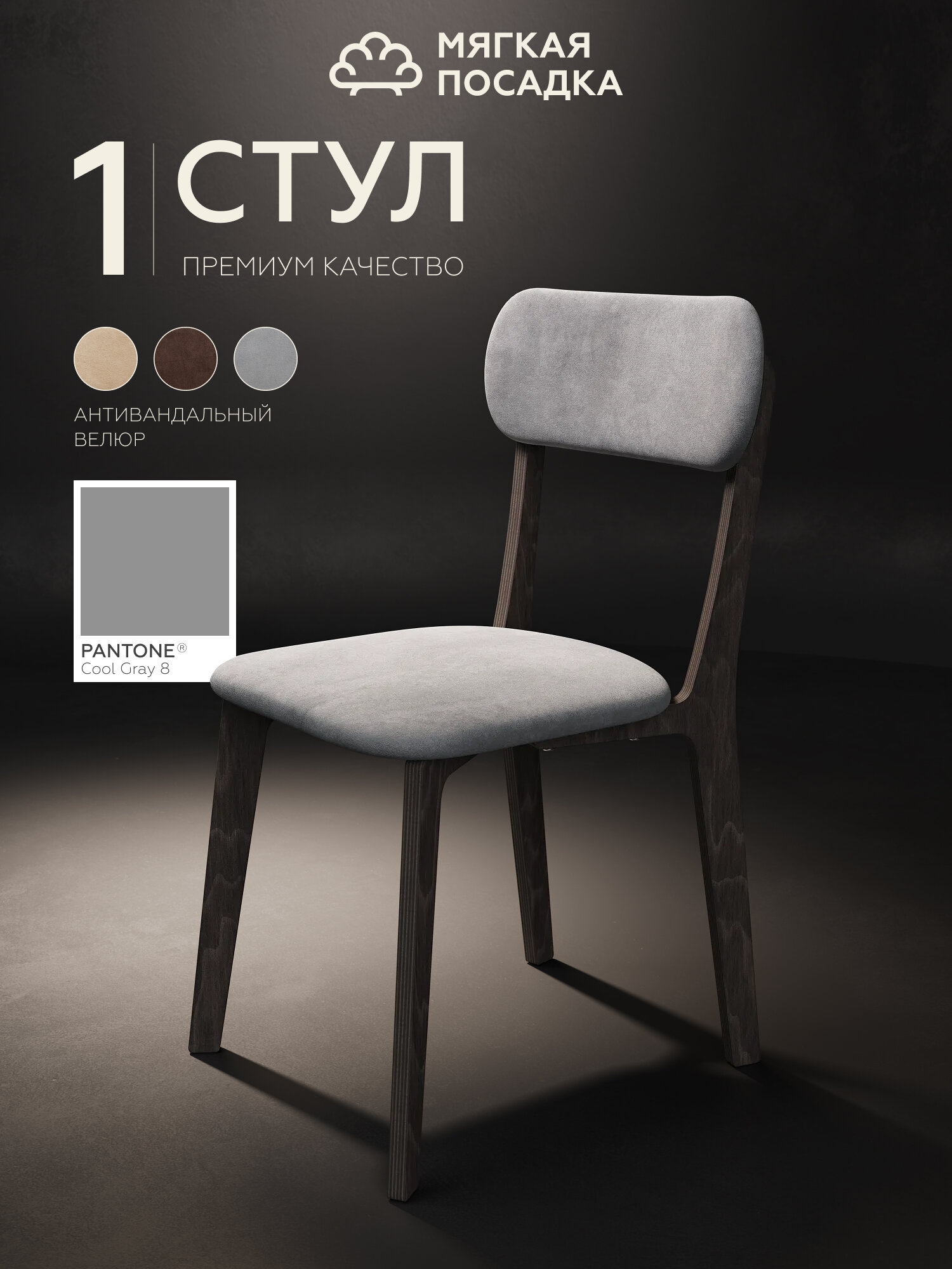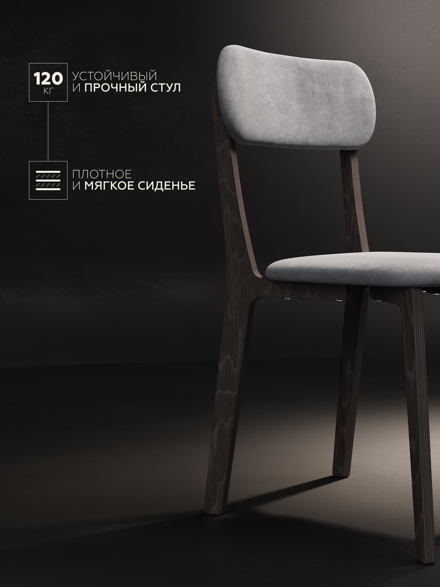 Стулья для кухни МЯГКАЯ ПОСАДКА комплект 4 шт деревянные мягкие со спинкой для обеденной зоны, велюр, серый 42х48х80 см 19 785 ₽