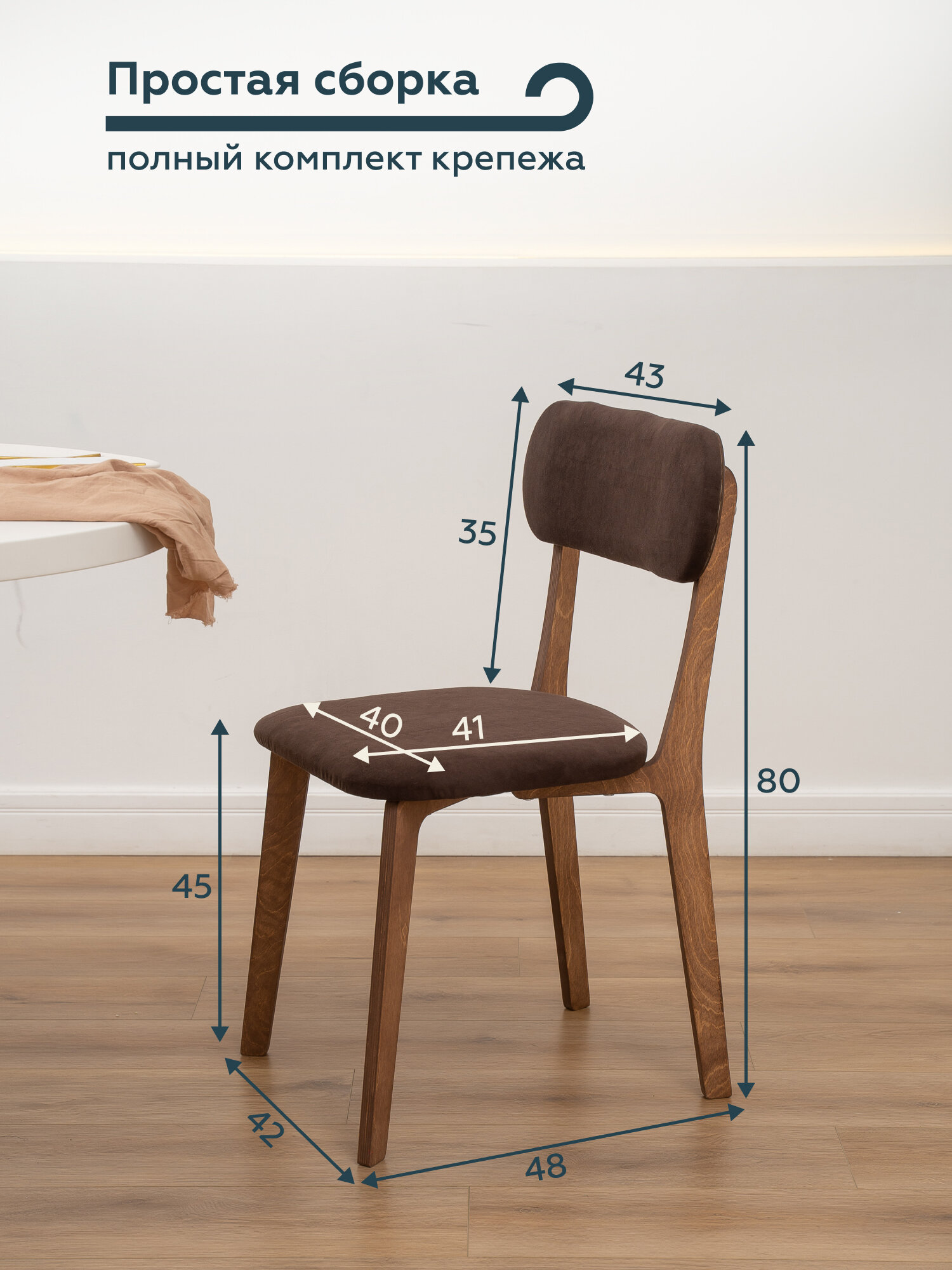 Стулья для кухни МЯГКАЯ ПОСАДКА комплект 4 шт деревянные мягкие со спинкой для обеденной зоны, велюр, коричневый 42х48х80 см 19 930 ₽