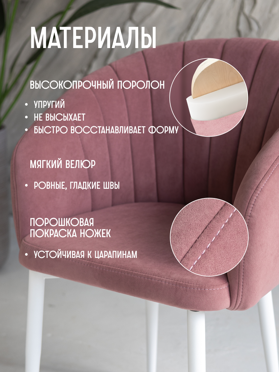 Стул для кухни мягкий розовый кресло со спинкой и подлокотниками интерьерный VVdom информация: