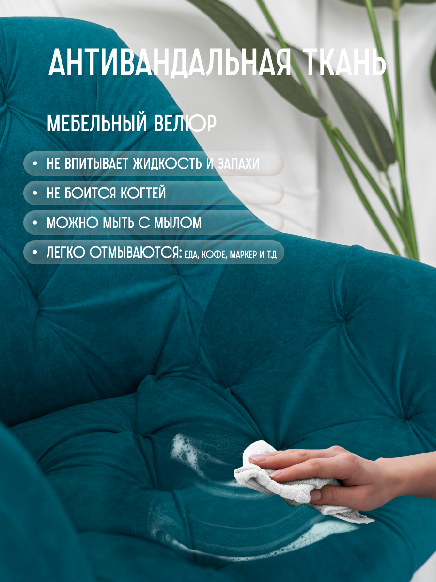 Характиристики этого товара не найдены!Отзывы на Мягкий стул для кухни бирюзовый со спинкой и подлокотниками VVdom