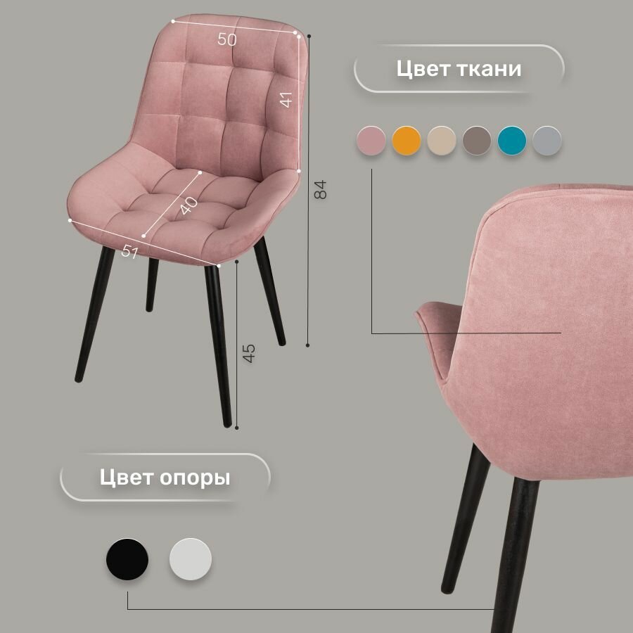 Отзывы на Стул 1 шт "Флекс", У Стулыча, антивандальный велюр, розовый, черные ножки