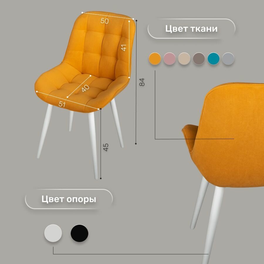 Характиристики этого товара не найдены!Отзывы на Стул 1 шт "Флекс", У Стулыча, антивандальный велюр, желтый, белые ножки