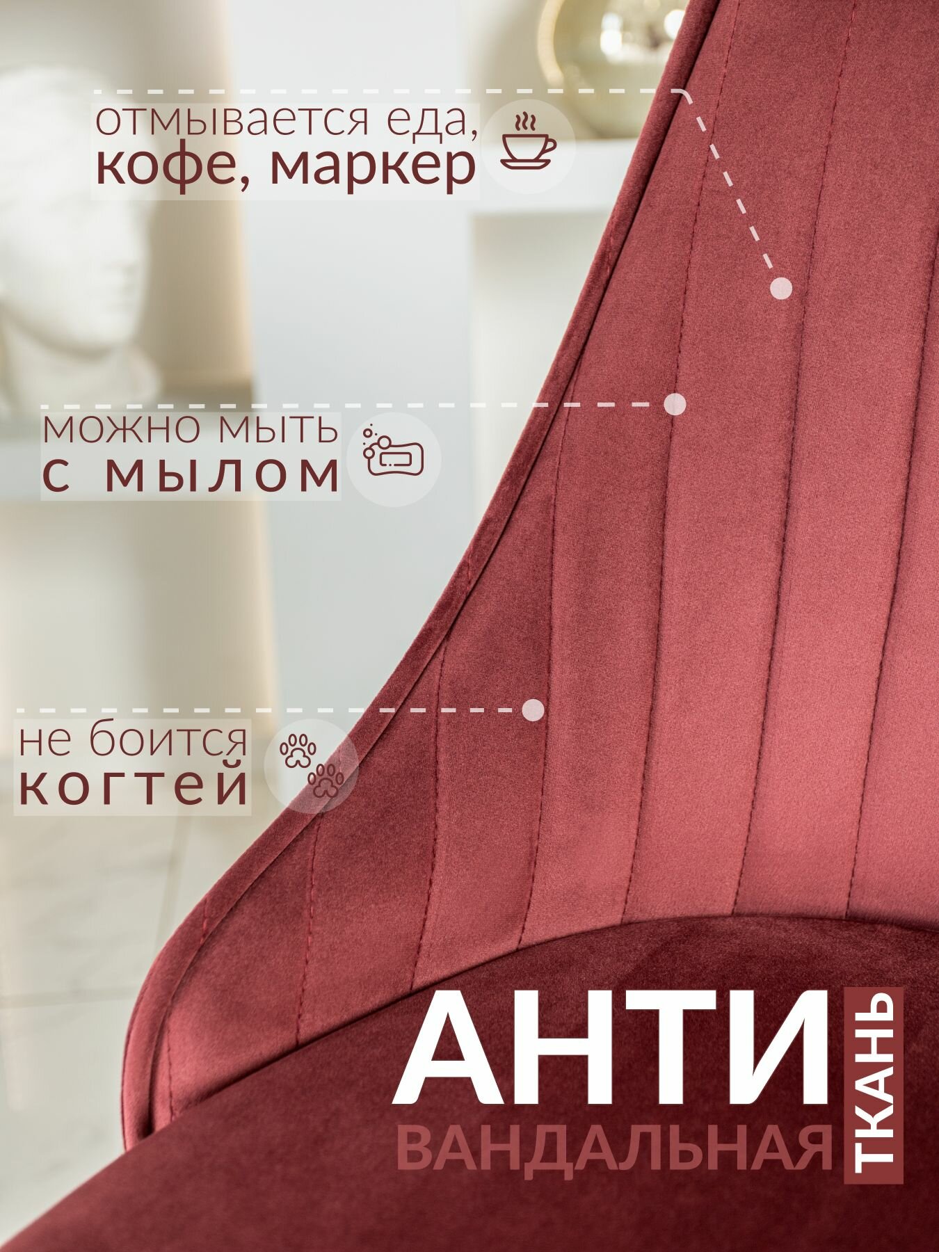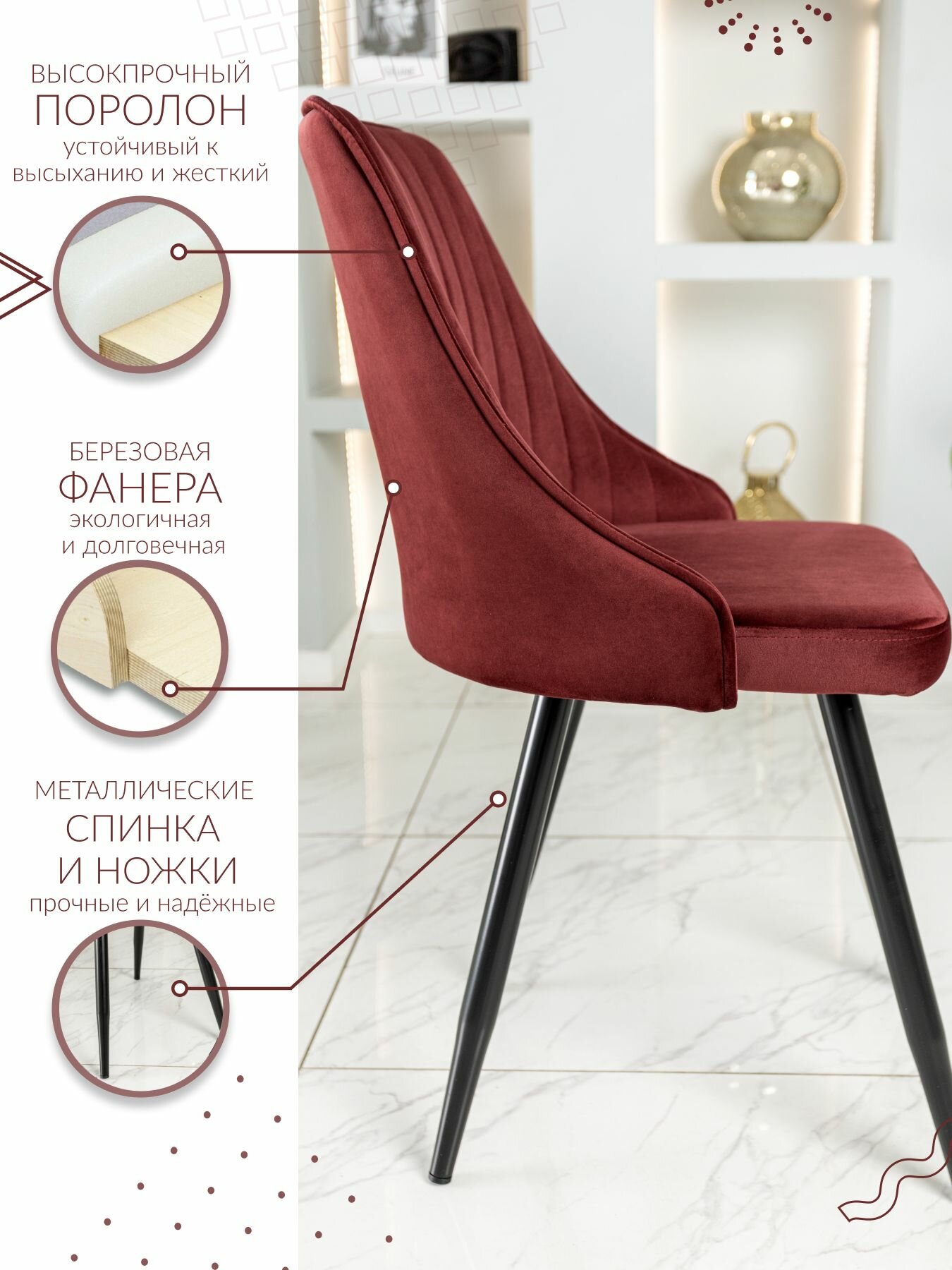 Характиристики этого товара не найдены!Отзывы на Комплект обеденных стульев для кухни цвет бордовый, ножки черные 2 шт.
