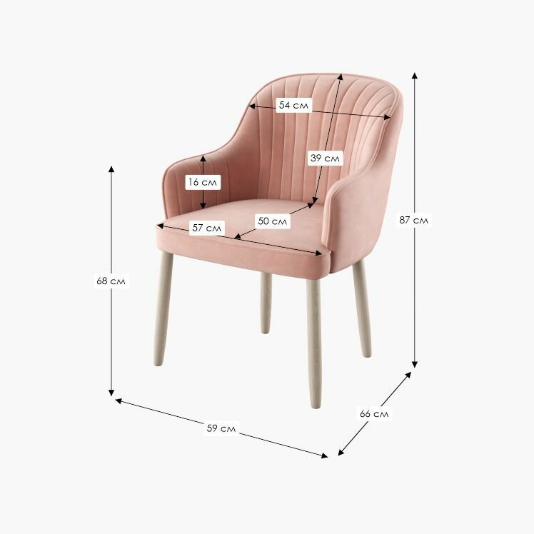 10 цен на Стул кресло MELISA-2 мягкий для кухни с подлокотниками на ножках обеденный стильный удобный в гостиную модерн велюр розовое