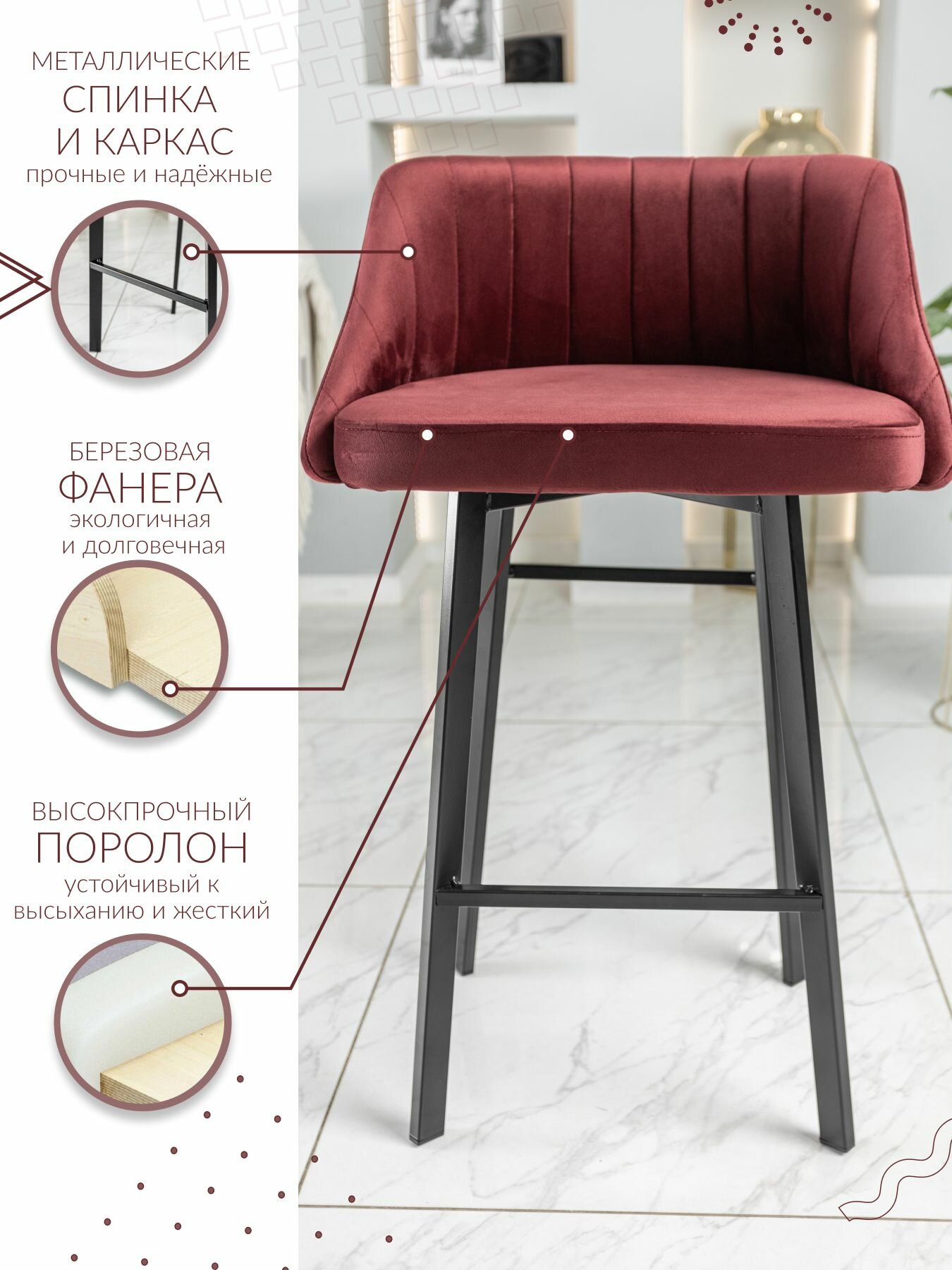 Барный стул со спинкой 1 шт. цвет бордовый 6 500 ₽