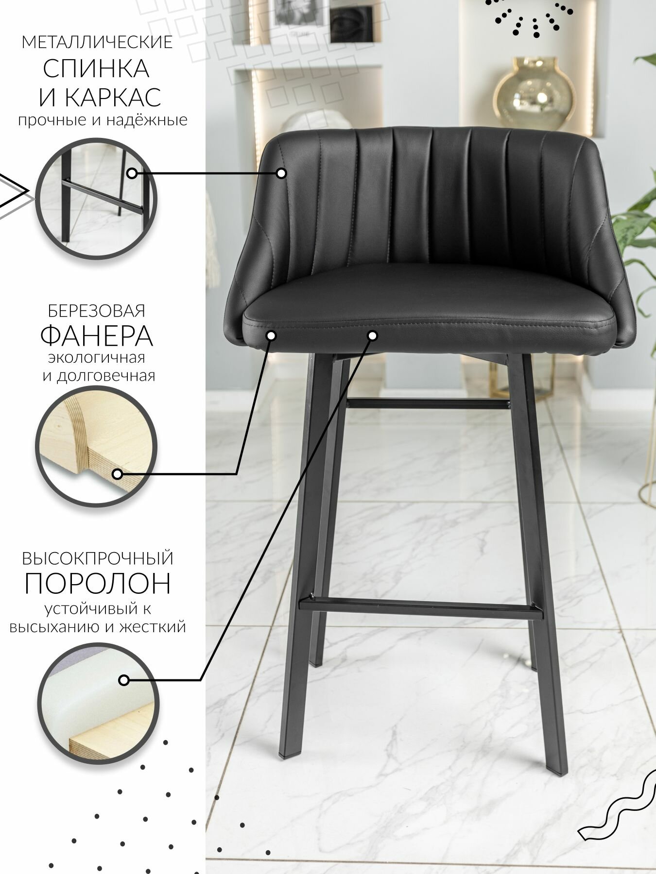 Барный стул со спинкой 1 шт. цвет черный экокожа информация: