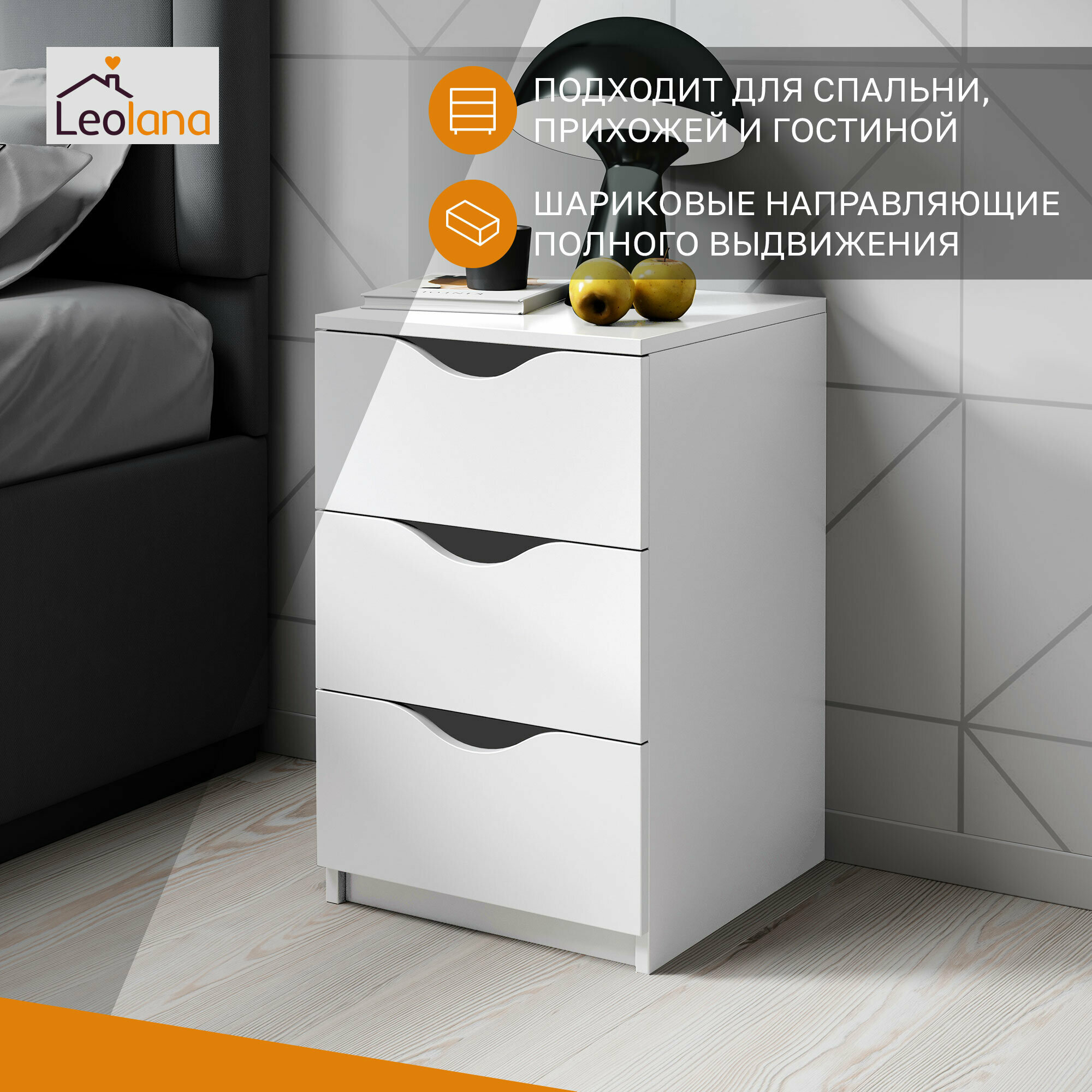Тумба прикроватная LeoLana Луки, 3 ящика, Белый, 41,8х40х64,2 см, 1 шт. информация: