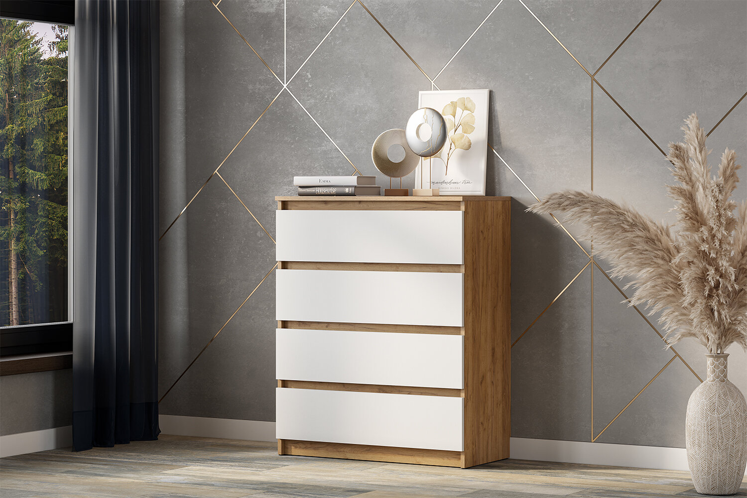 Комод ARNIKA Денвер, 4 ящика, ЛДСП, белый, золотой, 80х97х39 см информация: