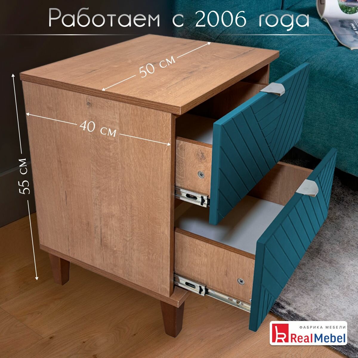 Тумба Real Mebel, 50*40*55, 2 выдвижных ящика, изумруд, комод, в спальню, прикроватная тумбочка информация: